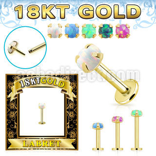 18k Gold Threadless Push Pin Labret with Synthetic Opal