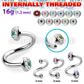Surgical Steel Internally Threaded Spiral with 3mm to 5mm Ferido Glued Multi Crystals with Colored Dot