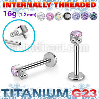 Titanium Internally Threaded Labret, Balls Custer & CZ Stone